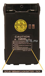 Обратная сторона радиостанции и аккумулятора. (Обратите внимание на чёрный цвет рации и наличие голограмм!)